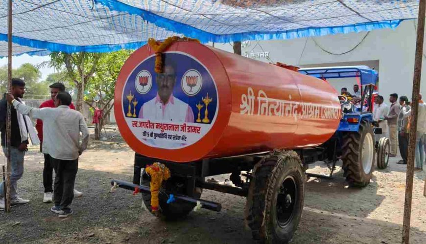स्मृति अनंत ! भाजपा विधायक मथुरालाल डामर ने पुत्र की स्मृति में श्री नित्यानंद गौशाला आश्रम को भेंट किया पानी का टैंकर व ट्रैक्टर