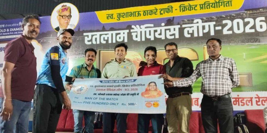 एसीएन टाइम्स @ रतलाम । स्व. कुशाभाऊ ठाकरे की स्मृति और पूर्व गृह मंत्री हिम्मत कोठारी की प्रेरणा से आयोजित रतलाम चैम्पियन लीग (RCL) – 2026 में चौथे दिन तक कुल 12 मैच हो चुके हैं। इस दौरान बल्लेबाजों ने 160 चौकों और 183 छक्कों की मदद से रनों की बरसात की। चौथे दिन हुए मुकाबलों में शैरानी सुपर किंग्स, सूर्या वॉरियर्स टीमें विजयी रहीं। समाचार लिखे जाने तक तीसरा मुकाबला जारी था।