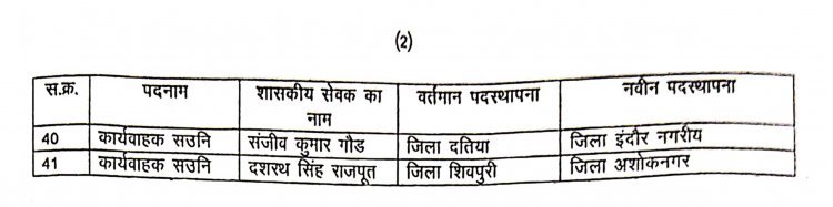 पुलिस स्थापना बोर्ड द्वारा अनुमोदित तबादला सूची विशेष महानिदेशक (प्रशासन) द्वारा जारी किया गया है। इसमें बताया गया है कि स्थानांतरित सहायक उप निरीक्षकों को संबंधित इकाई के अंदर कार्य आवंटन इकाई प्रमुख द्वारा संबंधित पुलिसकर्मियों की आमद होने के बाद किया जाएगा। इसके लिए मप्र शासन के गृह विभाग के पत्र एफ-1-73/1998/ब-2/दो, दिनांक 14.2.2007 एवं पुलिस मुख्यालय भोपाल के पृष्ठांकन क्रमांक पुमु/1/भापुसे/379/2007, दिनांक 19.2.2007 का पालन करने के निर्देश दिए गए हैं।