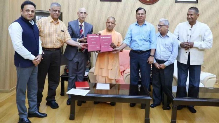 न्यायिक जांच समिति के सदस्य संभल हिंसा 2024 की रिपोर्ट सीएम योगी आदित्य नाथ को सौंपते हुए।